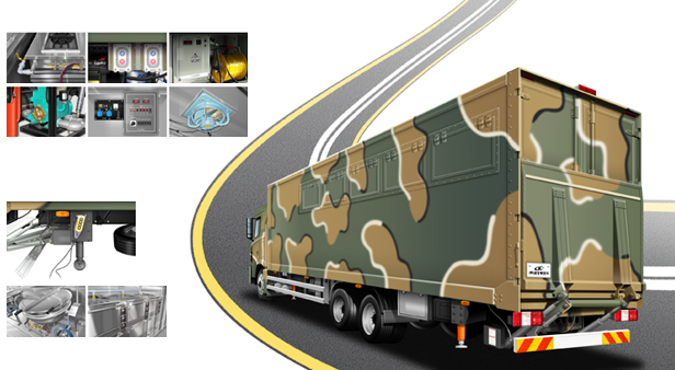 군납 특수탑차최고의 설계와 최신 기술로 내부를 용도에 맞게 제작합니다.