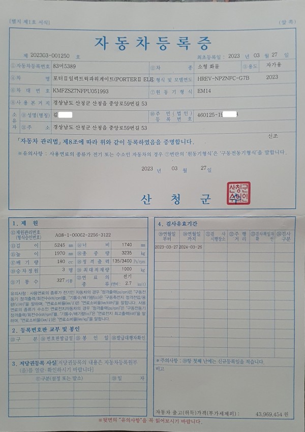 탁송료 포함(경상남도 산청군 산청읍)