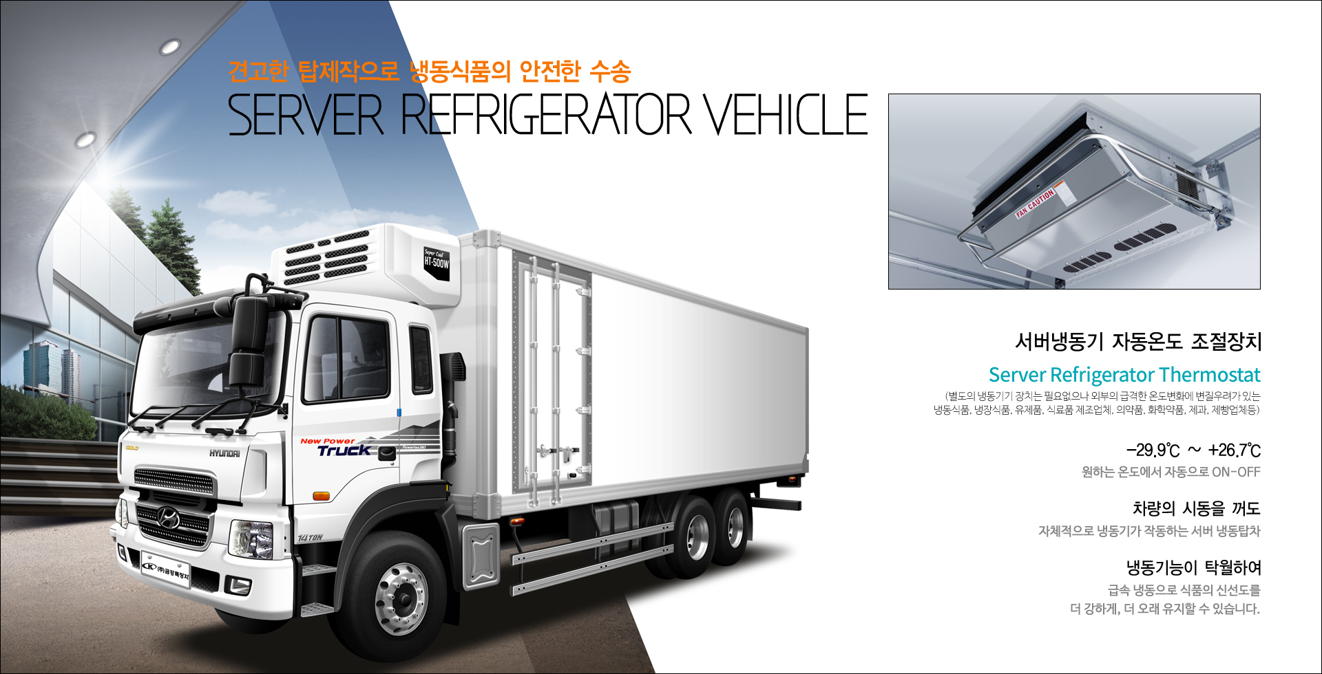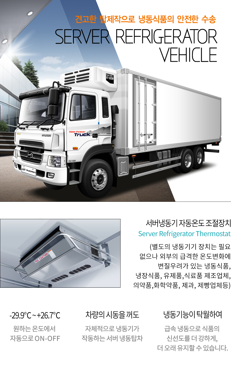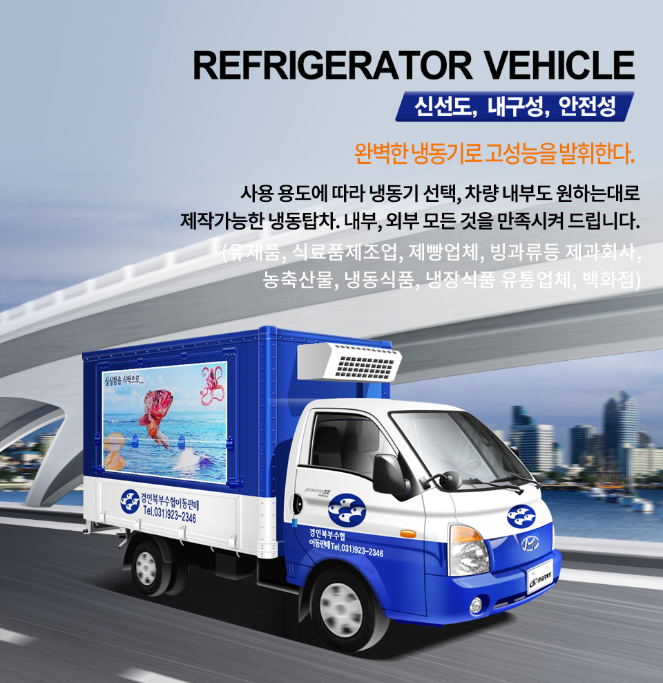 관계없이 식품의 신선도를 유지하여 각종 냉동, 냉장식품의 수송에 매우 탁월합니다.