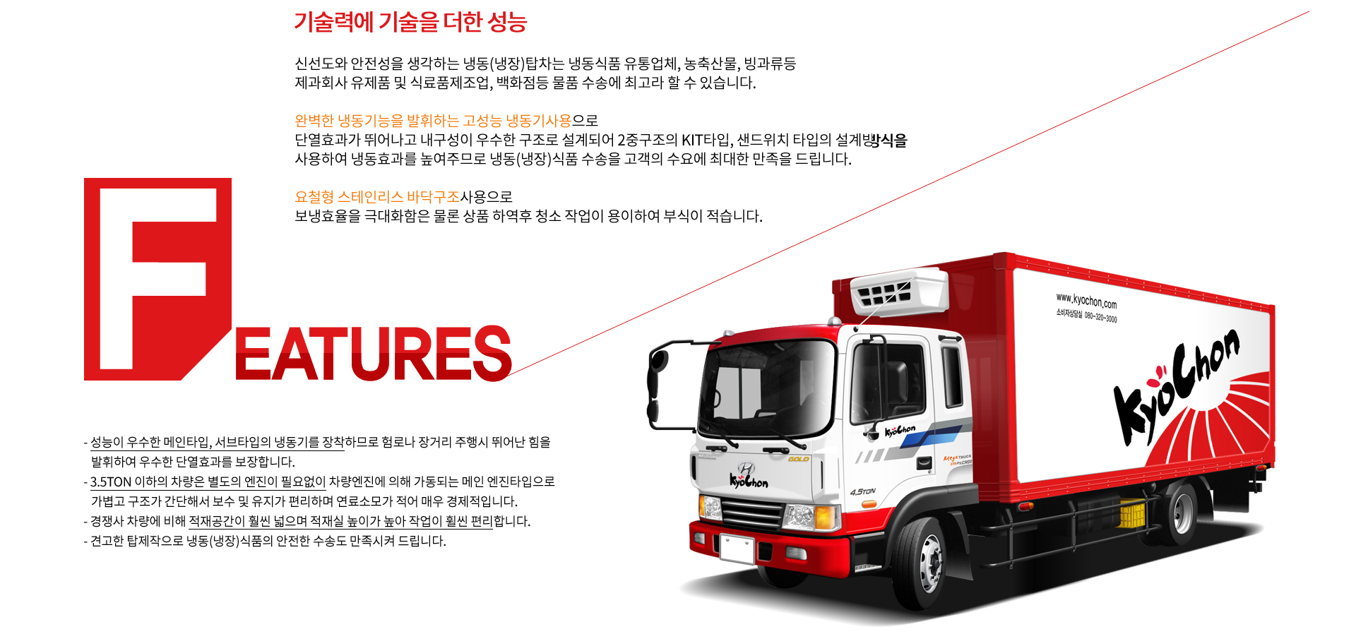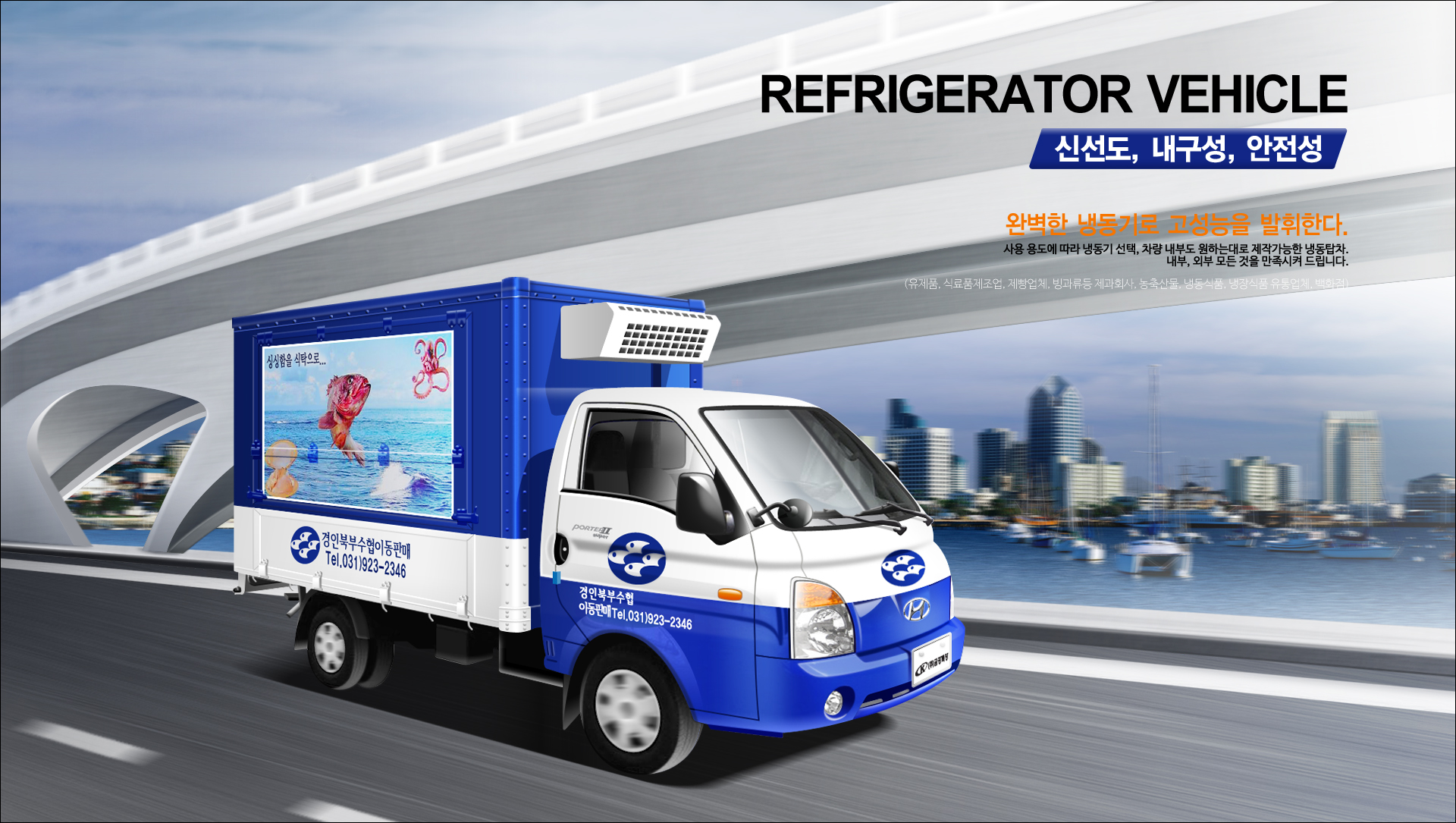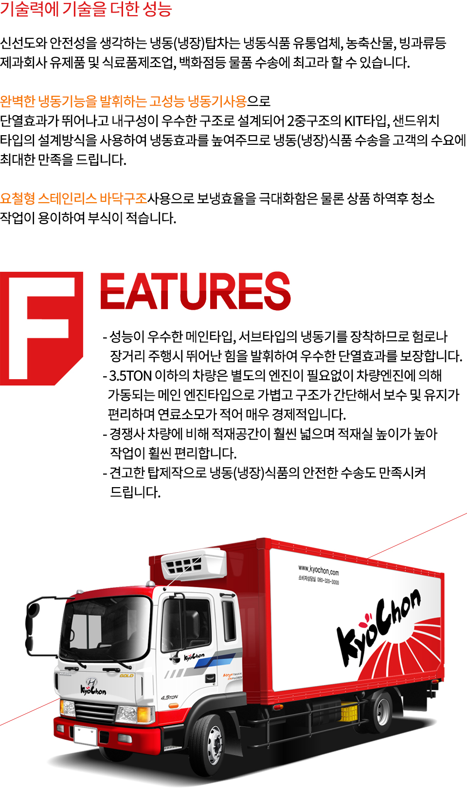 관계없이 식품의 신선도를 유지하여 각종 냉동, 냉장식품의 수송에 매우 탁월합니다.