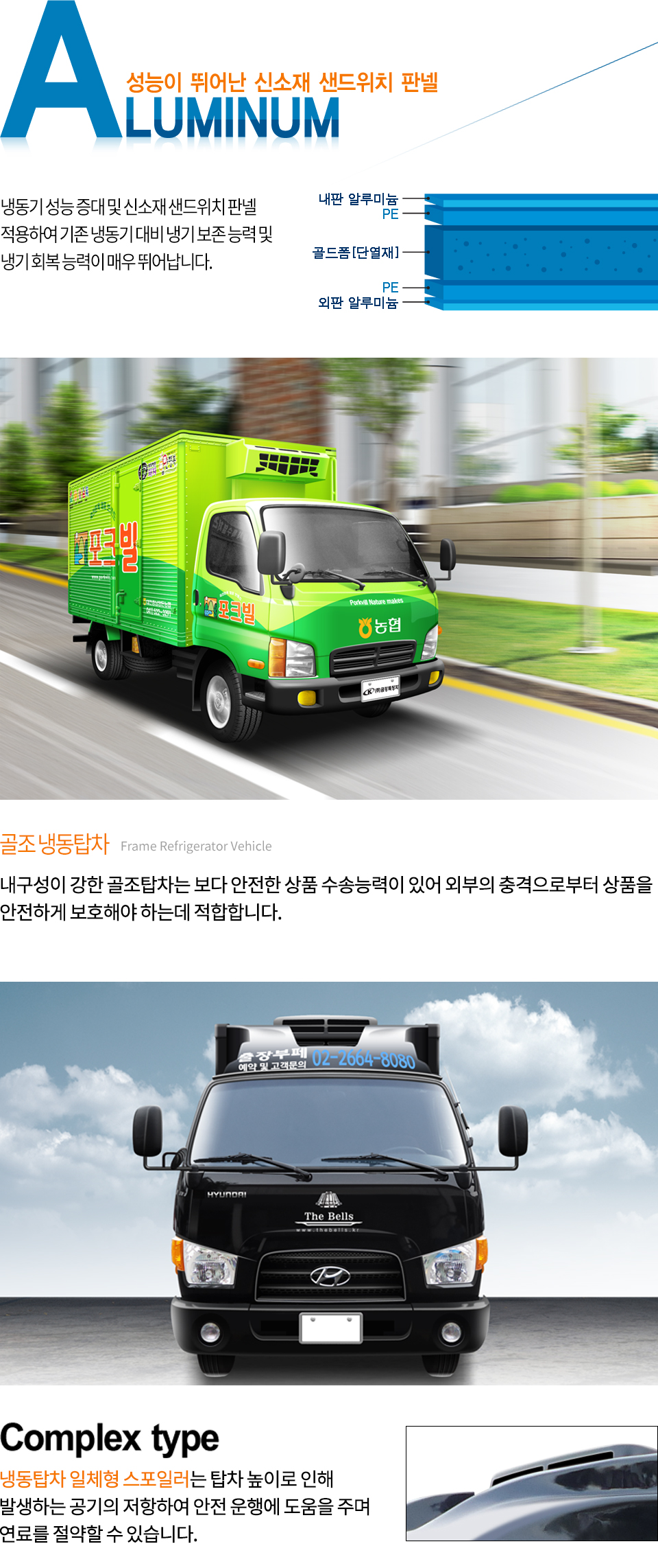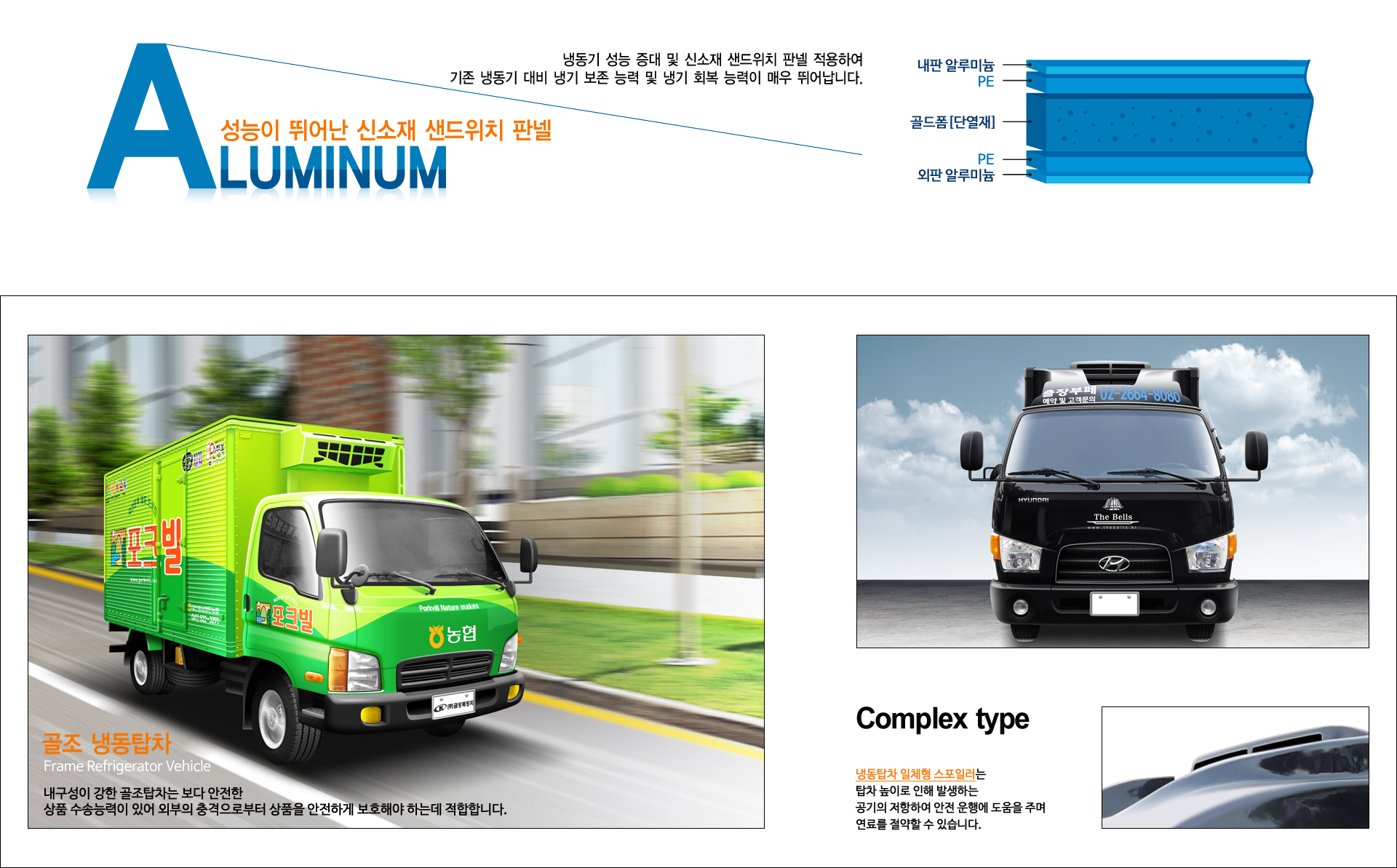 경량알미늄, 내·외판과 우레탄, 골드폼 단열재로 시공하여